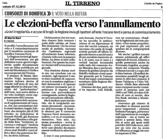 Le elezioni-beffa verso l’annullamento - Il Tirreno, 7 dicembre 2013