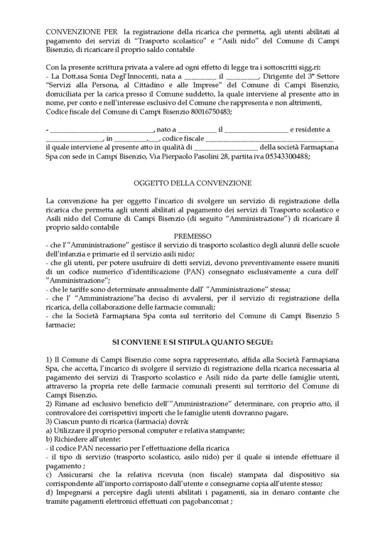 | attuale | 06:22, 31 dic 2013 | 1 239 × 1 754, 2 pagine (59 KB) | Niccolo Rigacci (discussione | contributi) | Delibera n. 292 del 27/12/2013 - Sistema info rmatizzato per il pagamento dei servizi scolastici. Approvazione schema di convenzione con Farmapiana Spa e adempimenti vari. - Allegato: schema convenzione |