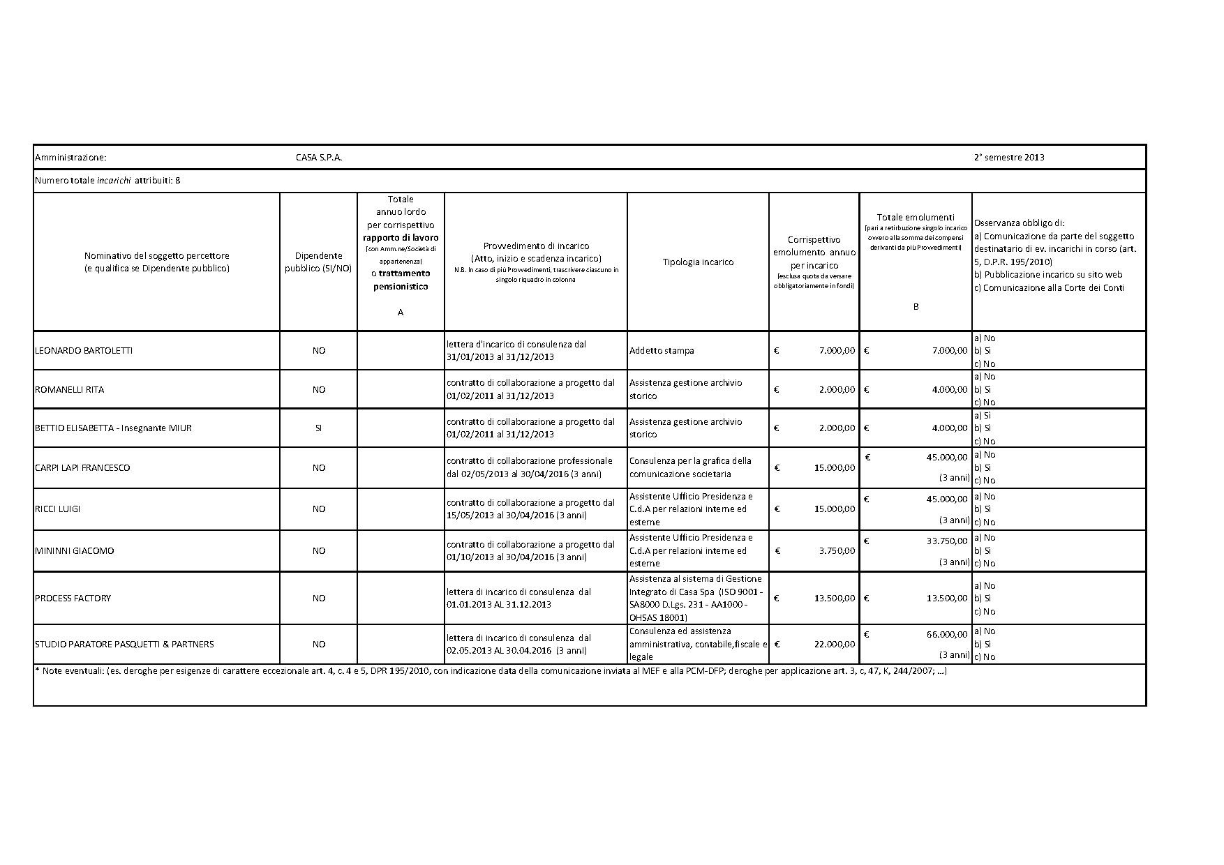 Casa S.p.a. - Incarichi esterni, secondo semestre 2013