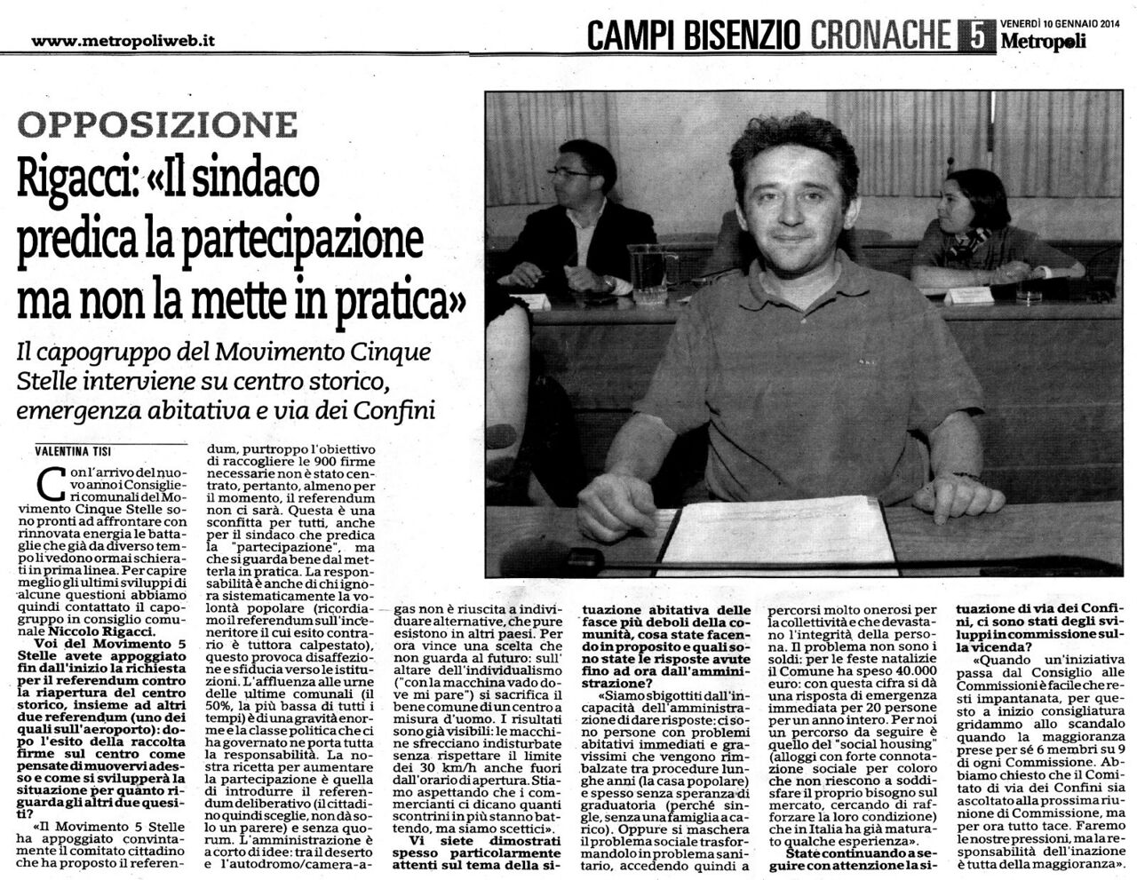 Rigacci: "Il sindaco predica la partecipazione ma non la mette in pratica" - Metropoli, 10 gennaio 2014