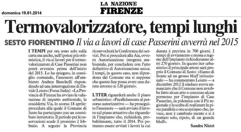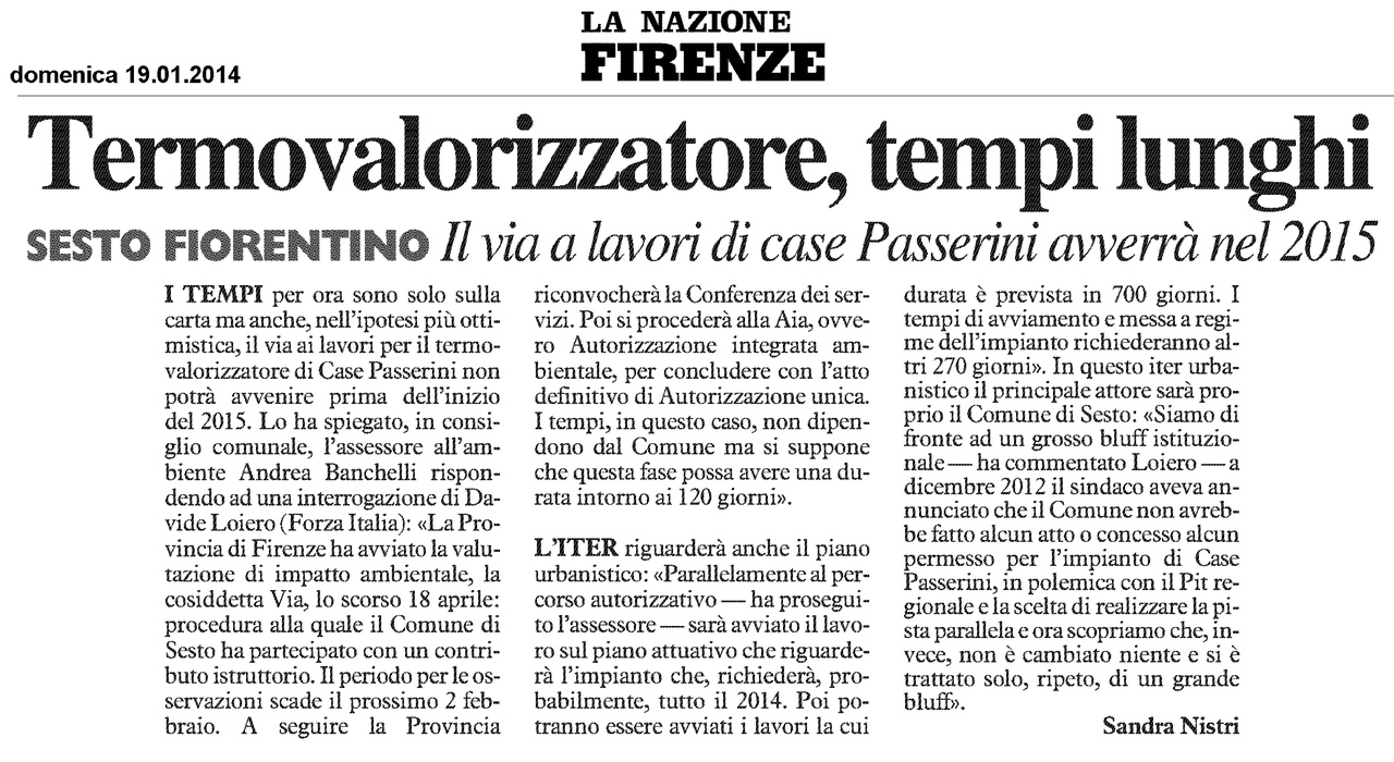 Termovalorizzatore, tempi lunghi - La Nazione Firenze - 19 gennaio 2014