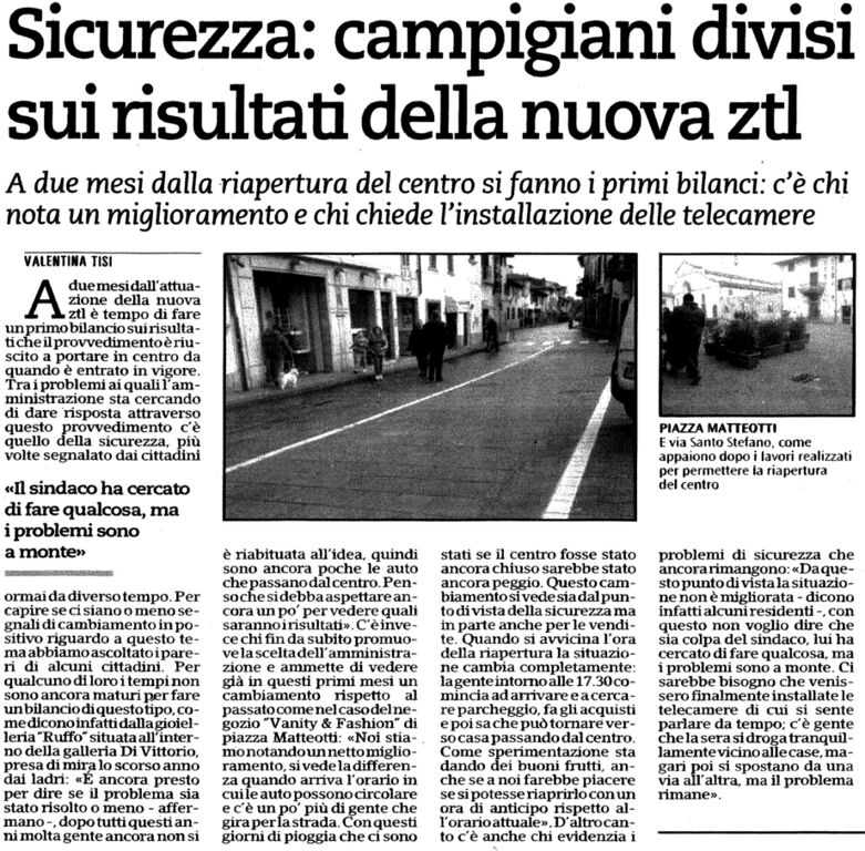 Sicurezza: campigiani divisi sui risultati della nuova ztl - Metropoli - 7 febbraio 2014