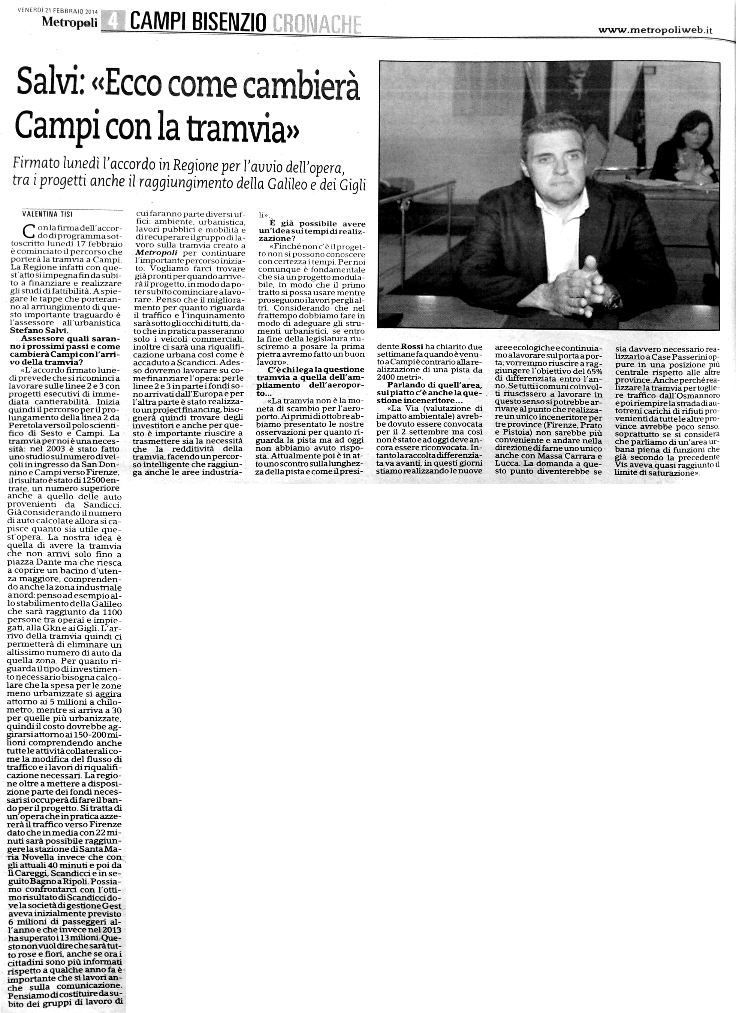 Salvi: "Ecco come cambierà Campi con la tramvia" - Metropoli, 21 febbraio 2014 Cagegoria:Mobilità