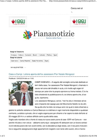 Casa a Campi. Lettera aperta dell’ex assessore Pier Natale Mengozzi - Piananotizie - 28 febbraio 2014