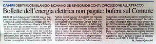Bollette dell'energia elettrica non pagate: bufera sul Comune - La Nazione, 27 aprile 2014