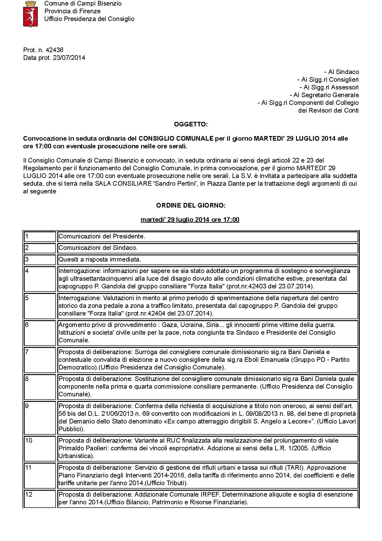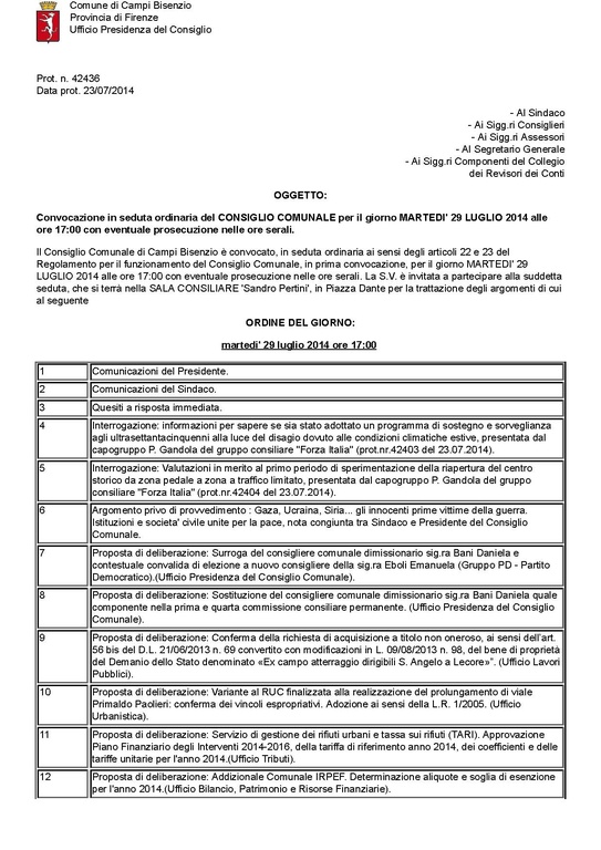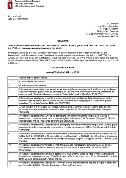 Comune di Campi Bisenzio - Consiglio comunale - Assemblea del 29 luglio 2014