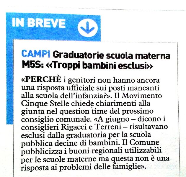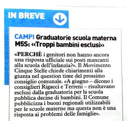 Campi Graduatorie scuola materna M5S: "Troppi bambini esclusi" - La Nazione - 9 settembre 2014
