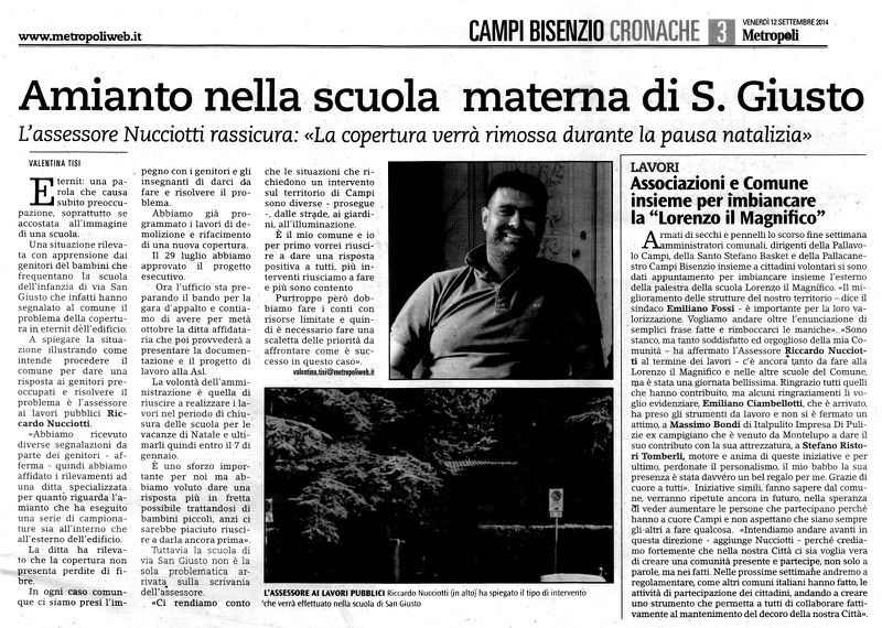 Amianto nella scuola materna di S. Giusto - Metropoli - 12 settembre 2014