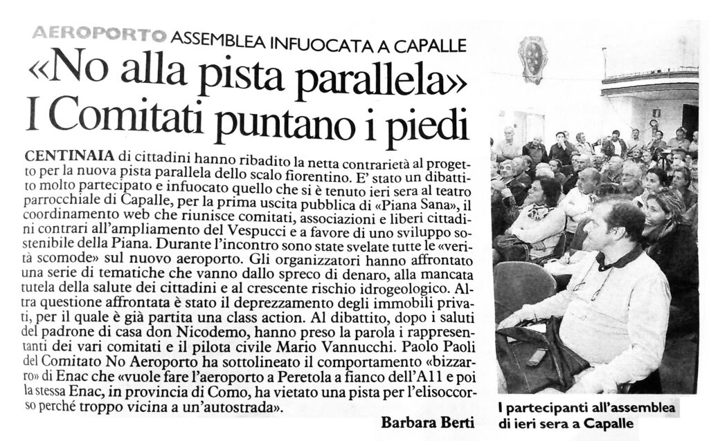 "No alla pista parallela" - I Comitati puntano i piedi - La Nazione, 24 settembre 2014