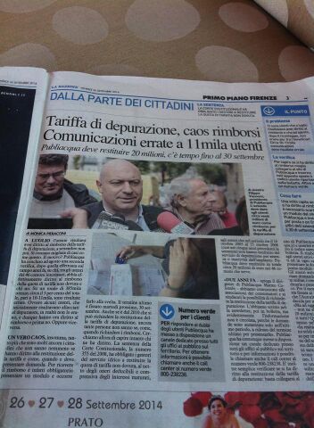 Tariffa di depurazione, caos rimborsi. Comunicazioni errate a 11mila utenti - La Nazione - 26 settembre 2014