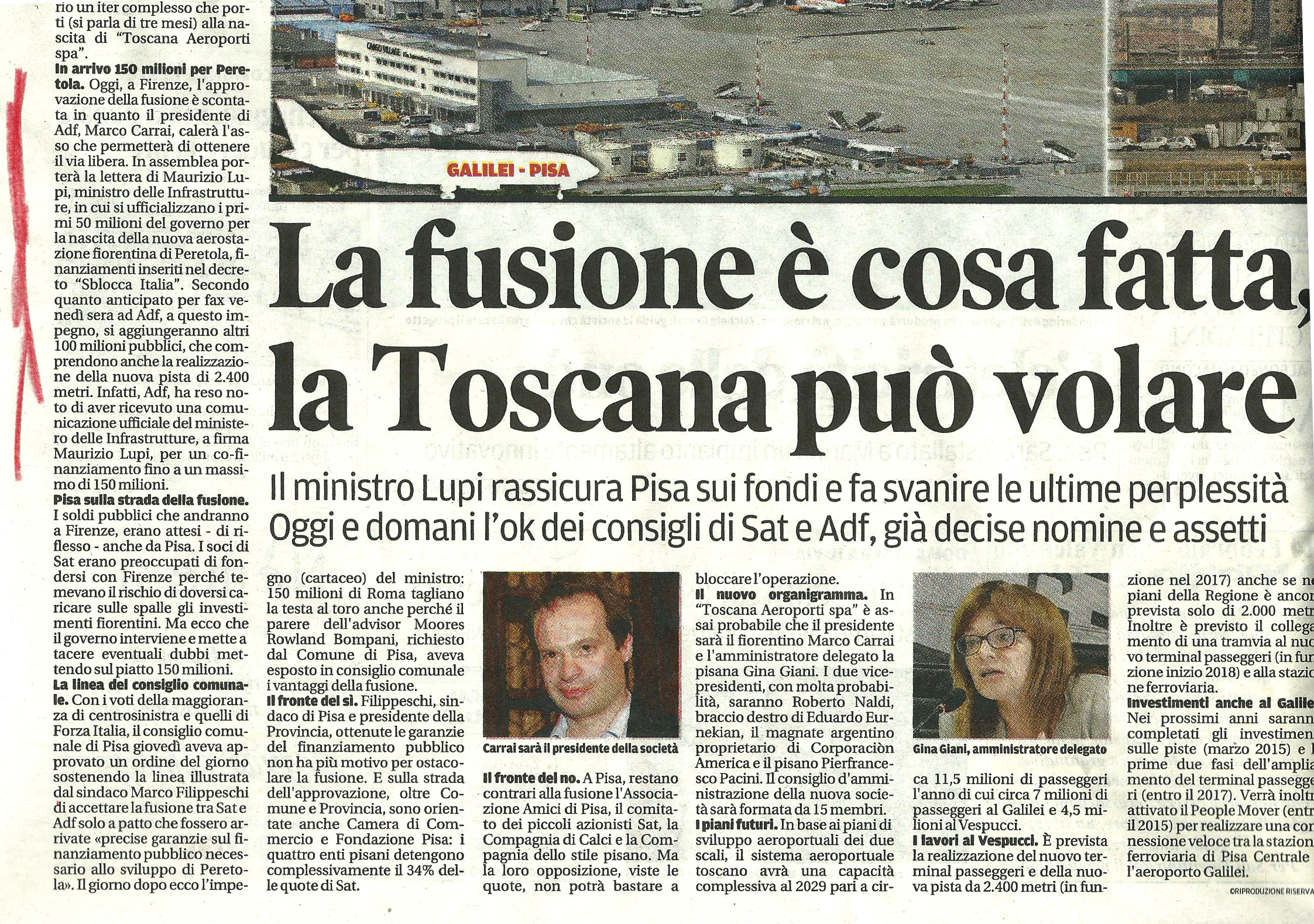 La fusione è cosa fatta la Toscana può volare - Il Tirreno, 9 febbraio 2015