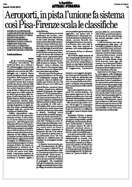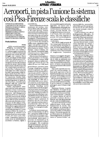Aeroporti, in pista l'unione fa sistema così Pisa-Firenze scala le classifiche - La Repubblica, 16 marzo 2015