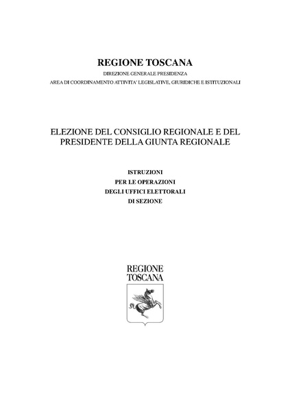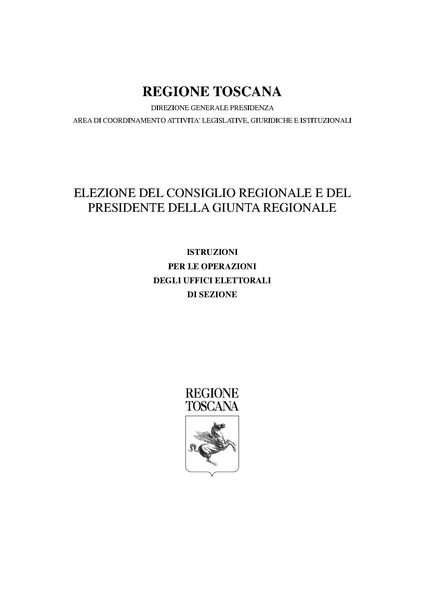 REGIONE TOSCANA - ELEZIONE DEL CONSIGLIO REGIONALE E DEL PRESIDENTE DELLA GIUNTA REGIONALE - ISTRUZIONI PER LE OPERAZIONI DEGLI UFFICI ELETTORALI DI SEZIONE
