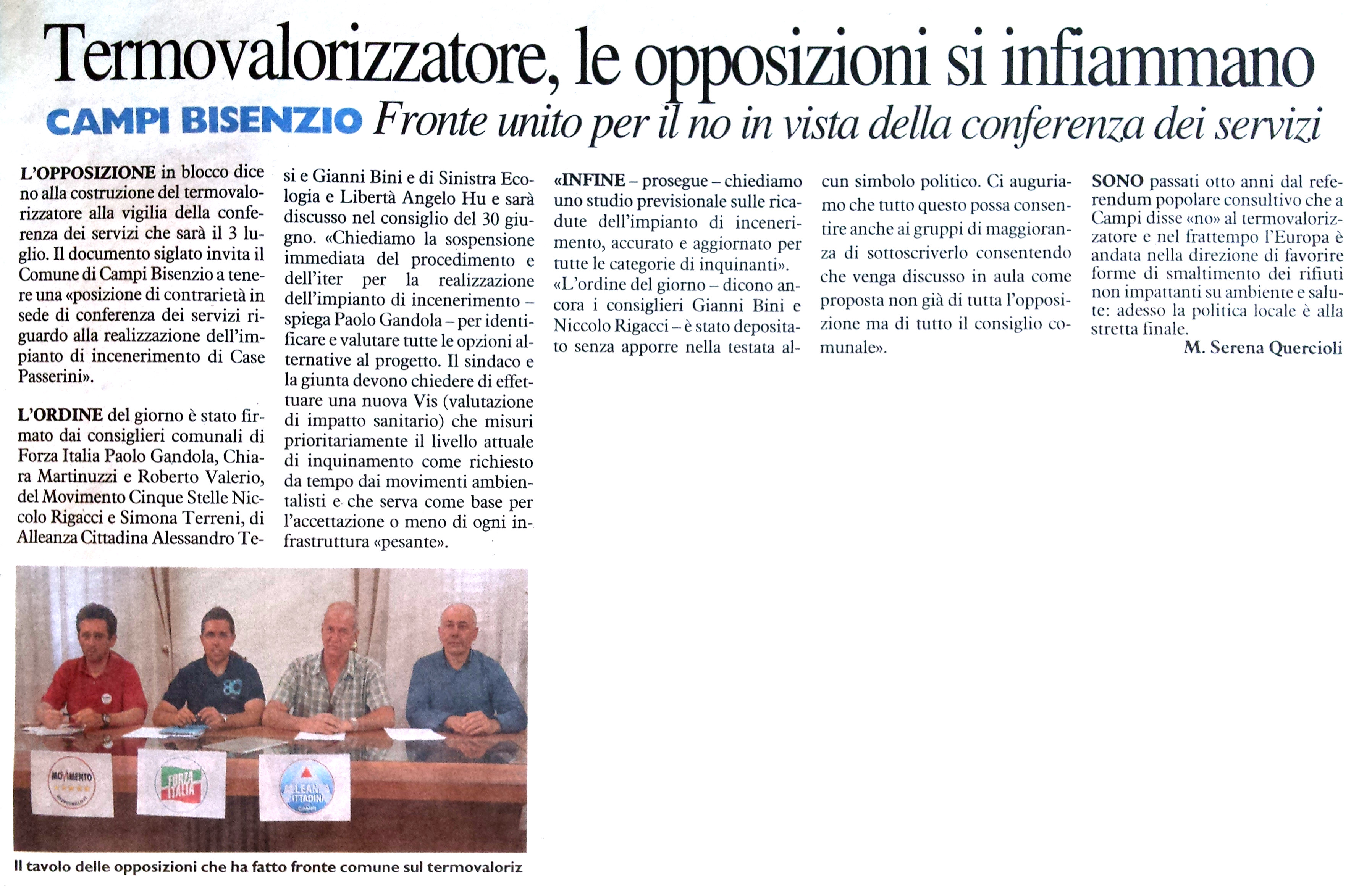 Termovalorizzatore, le opposioni si infiammano - La Nazione, 25 giugno 2015