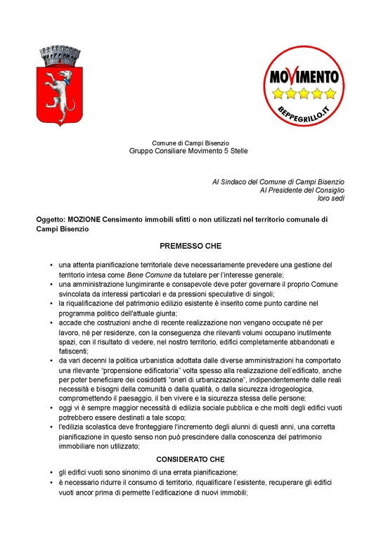 Mozione Censimento immobili sfitti o non utilizzati nel territorio comunale di Campi Bisenzio - "Campagna per il censimento degli immobili sfitti o non utilizzati" di http://www.salviamoilpaesaggio.it/