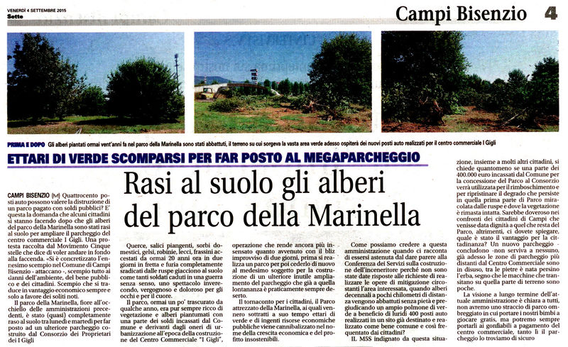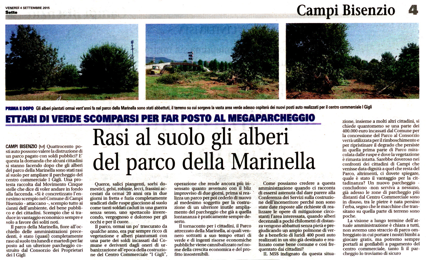Rasi al suolo gli alberi del parco della Marinella - Bisenziosette, 4 settembre 2015