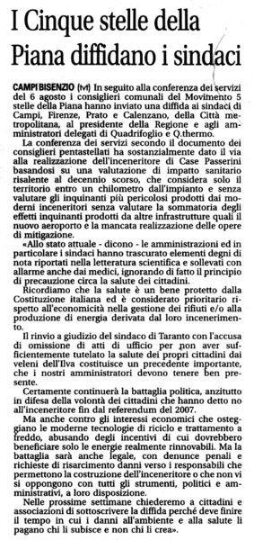 I Cinque stelle della Piana diffidano i sindaci - Bisenziosette, 4 settembre 2015