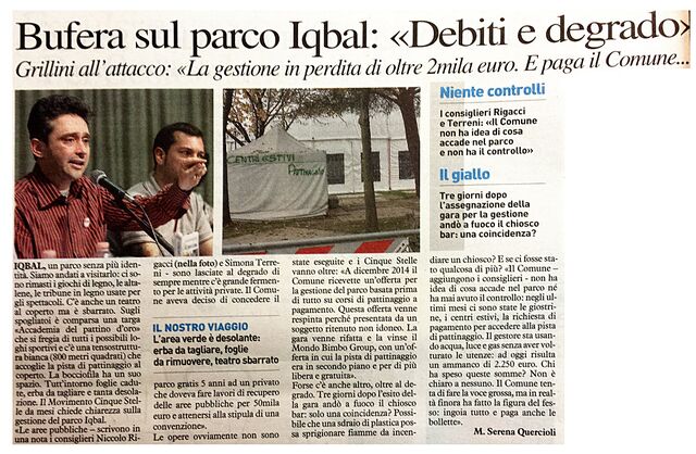Bufera sul parco Iqbal: Debiti e degrado - La Nazione, 14 novembre 2015