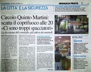 Circolo Quinto Martini: scatta il coprifuoco alle 20 "Ci sono troppi spacciatori" - La Nazione - 3 dicembre 2015