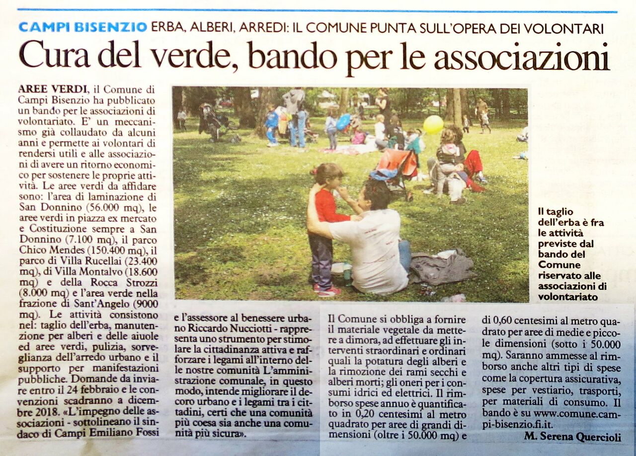 Cura del verde, bando per le associazioni - La Nazione, 20 febbraio 2016