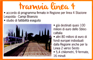 Propaganda sula linea 4 della tramvia, dalla pubblicazione #campicomunità del Comune - Febbraio 2016