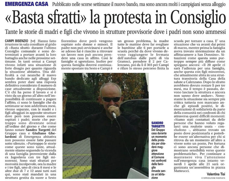 "Basta sfratti" la protesta in Consiglio - Bisenziosette, 1 aprile 2016
