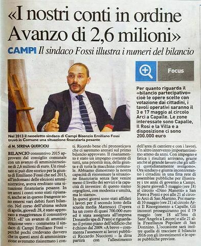 "I nostri conti in ordine. Avanzo di 2,6 milioni" - La Nazione, 30 aprile 2016
