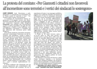 La protesta del comitato: "Per Giannotti i cittadini non favorevoli all'inceneritore sono terroristi e i vertici dei sindacati lo sostengono" - Bisenziosette, 8 luglio 2016