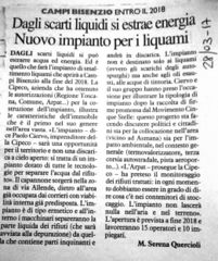 Dagli scarti liquidi si estra energia - Nuvo impianto per i liquami - La Nazione, 28 marzo 2017