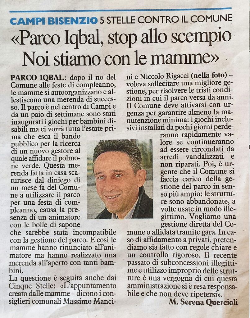 Parco Iqbal, stop allo scempio - Noi stiamo con le mamme - La Nazione - 6 giugno 2017