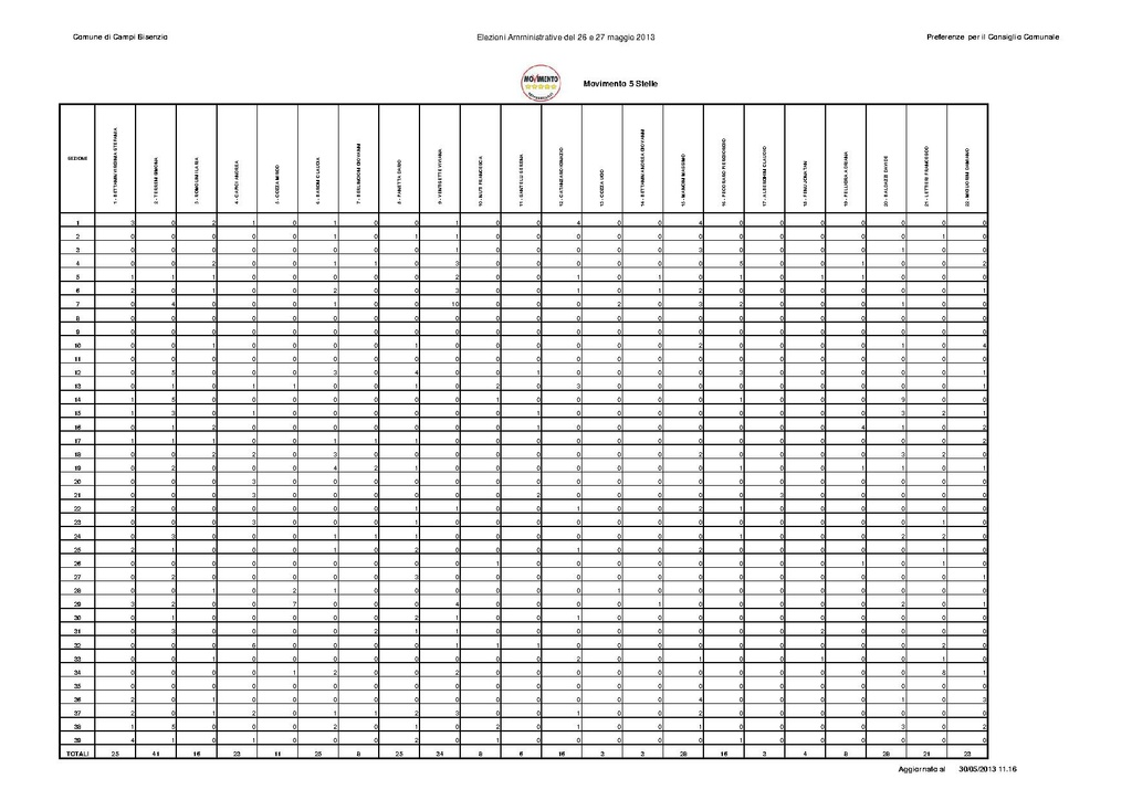 Elezioni Amministrative 2013 Campi Bisenzio, preferenze MoVimento 5 Stelle