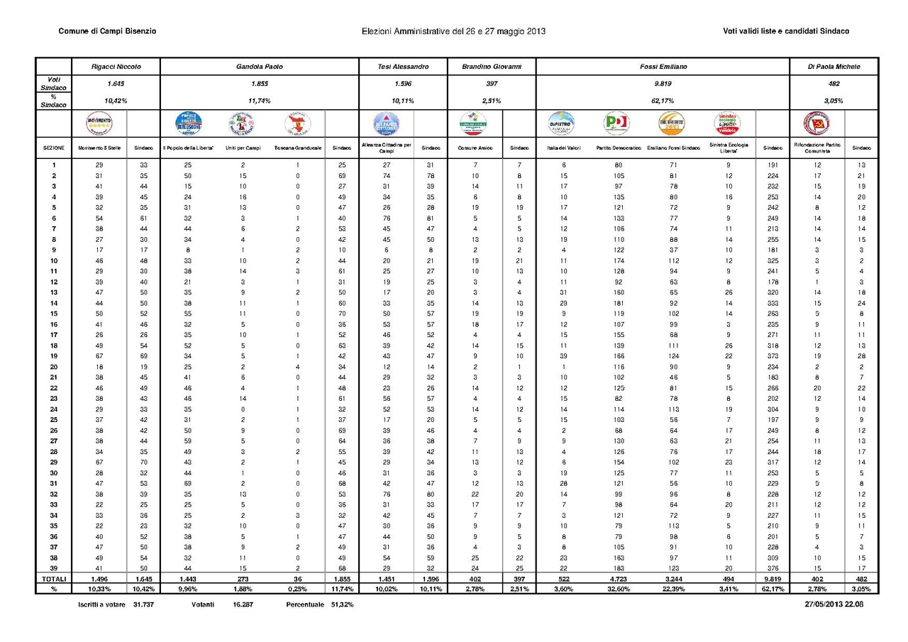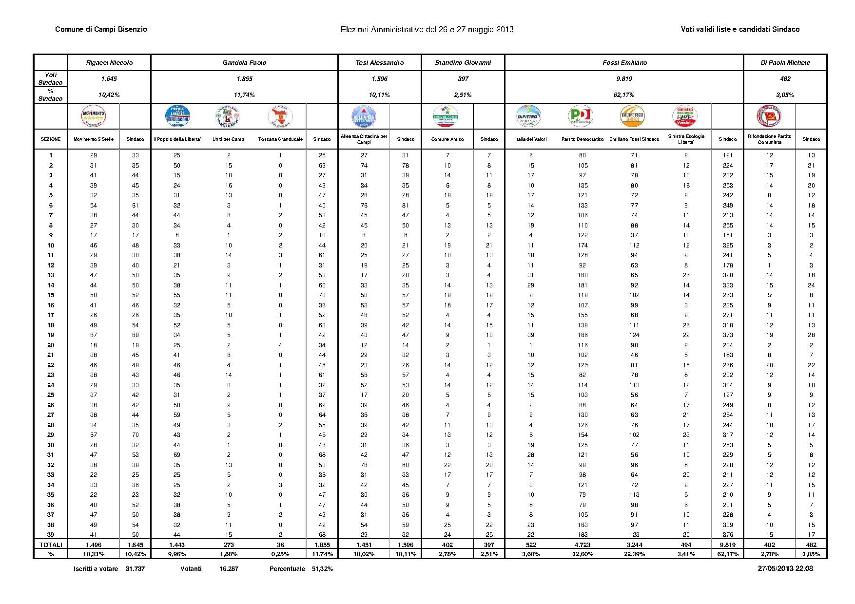 Elezioni Amministrative 2013 Campi Bisenzio, risultati