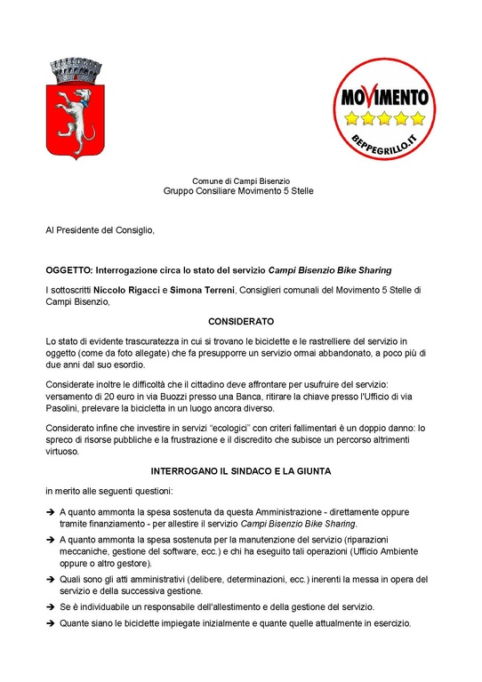 Esempio di interrogazione per Consiglio Comunale (formato PDF)