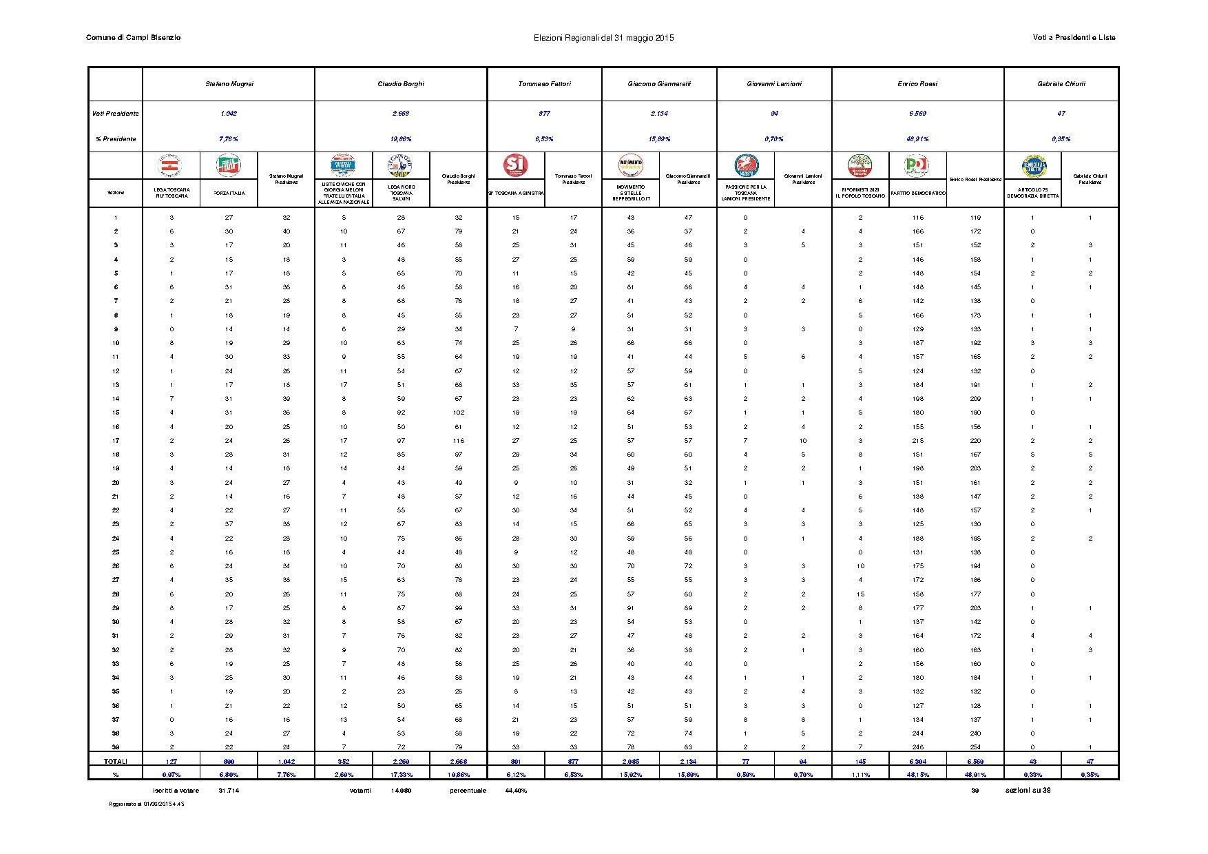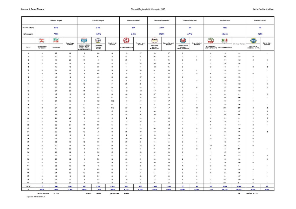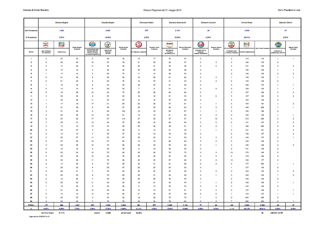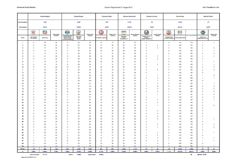 Elezioni Reginali del 31 maggio 2015 - Risultati Comune di Campi Bisenzio
