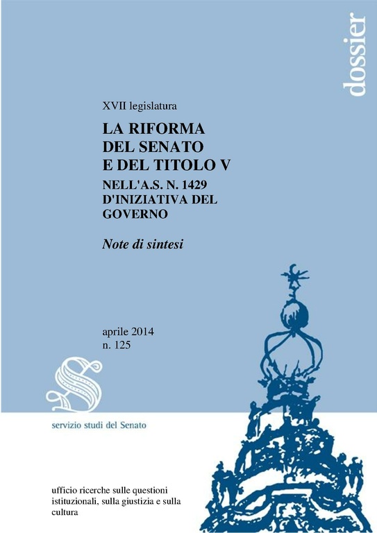 Dossier - LA RIFORMA DEL SENATO E DEL TITOLO V NELL'A.S. N. 1429 D'INIZIATIVA DEL GOVERNO - Note di sintesi