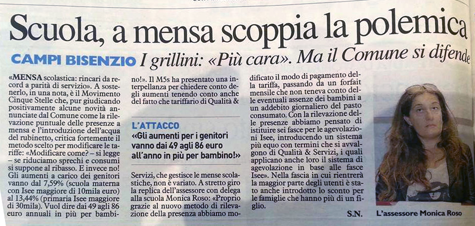 - Scuola, a mensa scoppia la polemica, La Nazione - 20 settembre 2014