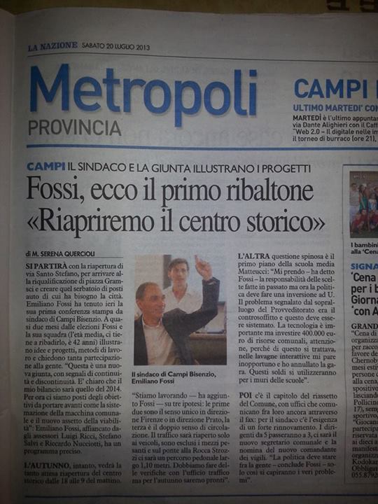 - Fossi, ecco il primo ribaltone "Riapriremo il centro storico" La Nazione, 20 luglio 2013