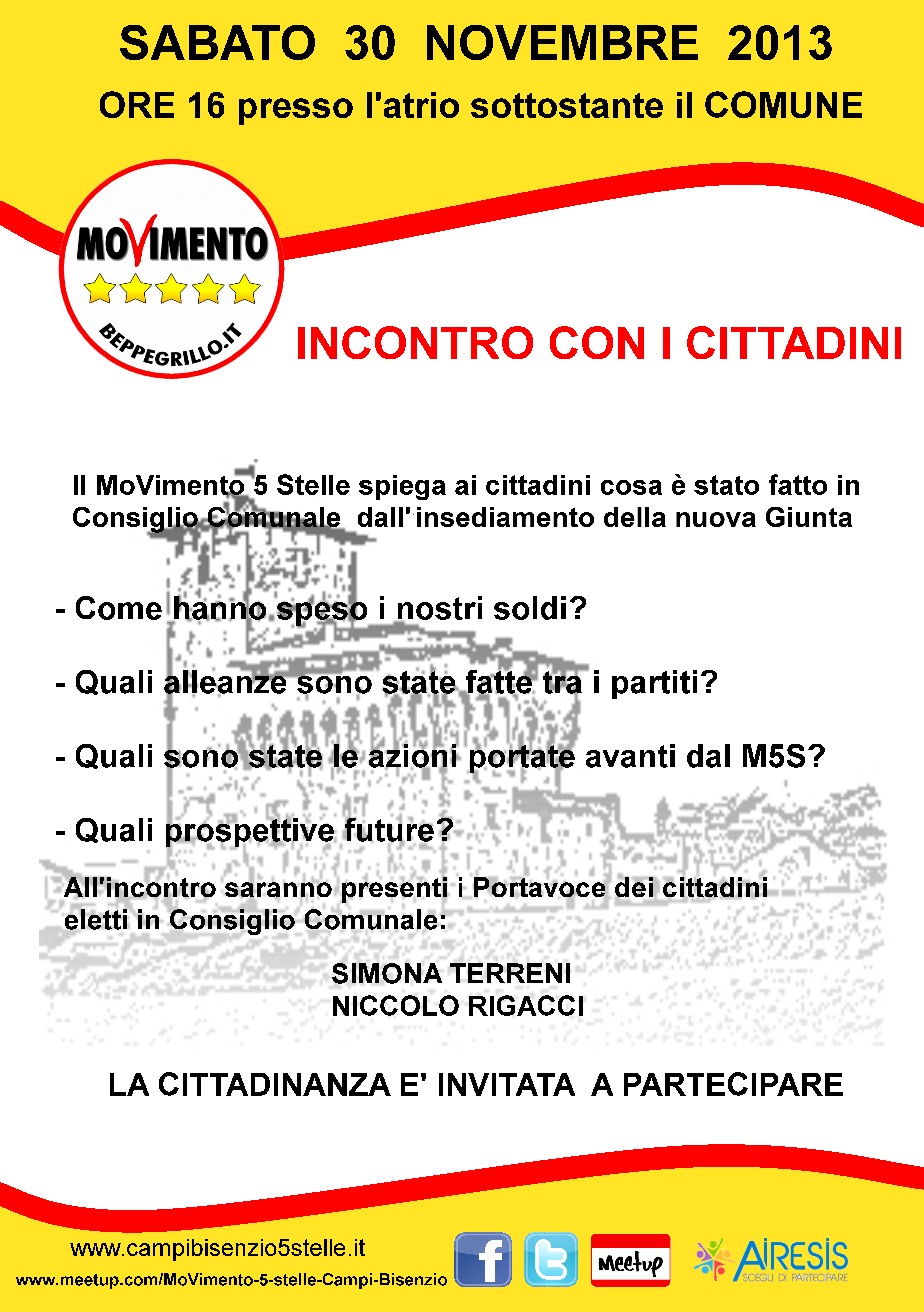 L’incontro si terrà  VENERDI 04/04/2014 alle ore 21 presso la sala Consiliare “Sandro Pertini” del Comune di Campi Bisenzio.