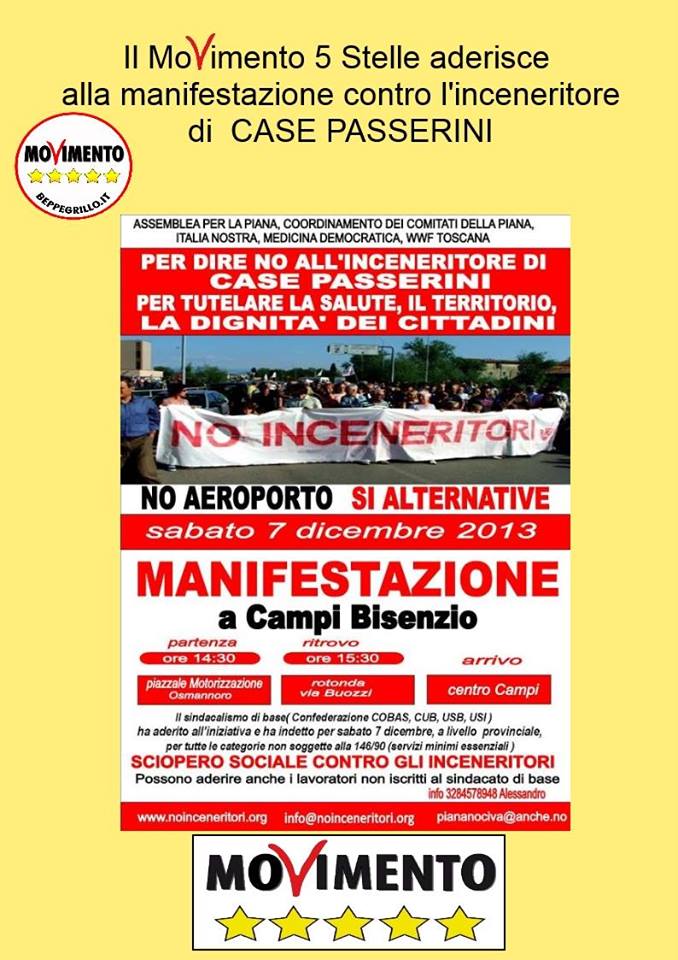 Manifestazione  contro il progetto di costruzione del nuovo Inceneritore di Case Passerini e contro l’ampliamento dell’aeroporto di Peretola.                                                           TUTTI I CITTADINI SONO INVITATI A PARTECIPARE                                                           Ritrovo e partenza dal piazzale della Motorizzazione (Osmannoro)