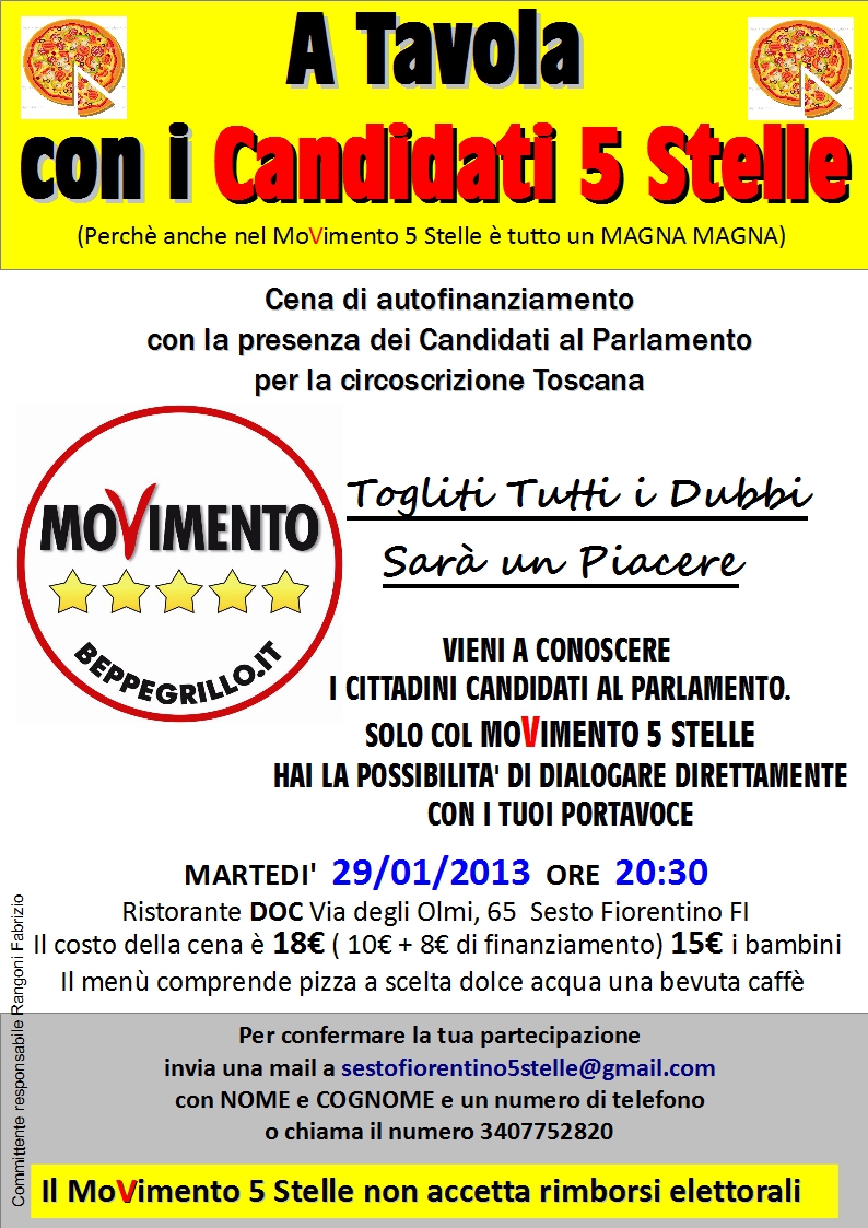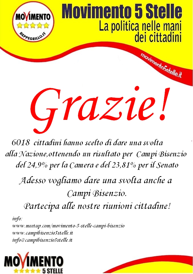 Mancano soltanto poche decine di firme per poter presentare la lista del MoVimento 5 Stelle alle Elezioni Amministrative di Maggio. Se credi nella possibilità di un vero e radicale cambiamento non perdere l’occasione di farne parte!