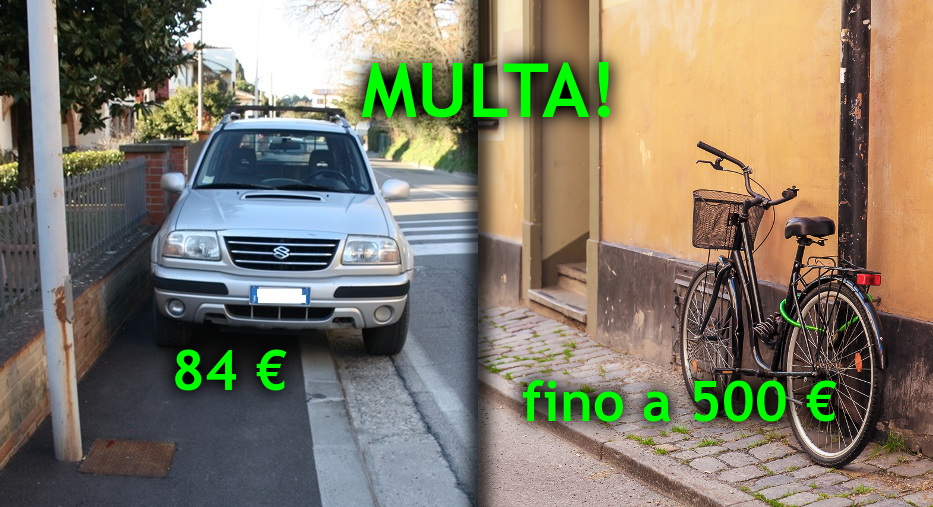 Non è tanto la multa per la bici in divieto di sosta (da 25 a 500 euro) che lascia stupiti e amareggiati. Lo sappiamo che i vigili sono sotto organico, non fanno la multa neanche alle auto contromano che pure hanno la targa! Sarà come per il divieto di sosta delle auto: una cattiva abitudine molto diffusa e mai sanzionata, salvo improvvise “stragi” di foglietti rosa che i cittadini percepiscono non come la necessità di rispettare le regole, ma come l’arbitrio del potere e la voglia di fare cassa.