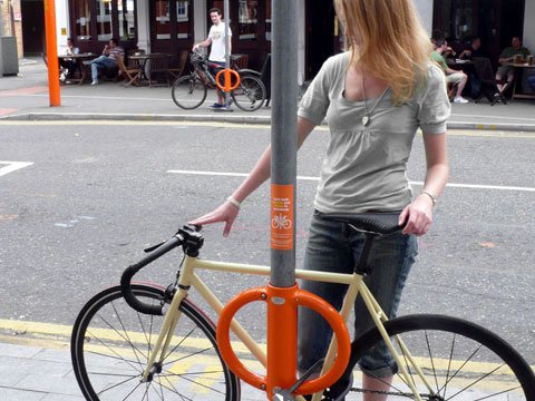 Nella foto: Un palo dotato di “Cyclehoop”, per favorire il parcheggio delle bici. Non a Campi ovviamente, ma in Inghilterra.